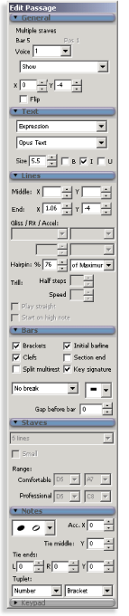 The new Properties window allows you to change the attributes of one or more objects via seven collapsible panels. The top panel includes the bar number and instrument name - invaluable when working on large scores