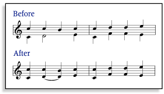 You can change the voice of a selected object or passage, merge notes in more than one voice into a single voice, or split notes into separate voices with a single keypress - invaluable for cleaning up Flexi-time and MIDI files.